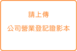 公司戶請上傳營業登記證/變更登記表,負責人或申請人身分證明文件影本,公司行號商業用途相關證明文件(企業在職證明(名片)、授權證明、委託證明(擇ㄧ)。